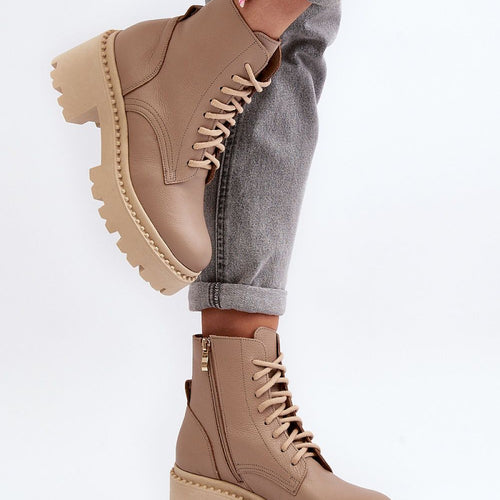 Women's boots made of natural leather. Set on a massive heel and a thick sole. The noses are rounded. This model is fastened with a zipper and additionally has lacing. Ankle-length upper. Stiffened heel counter. fabric natural leather Footbed natural leather Upper height 14 cm Heel height 7 cm Platform height 3.5 cm Size Insole lenght 36 23.5 cm 37...