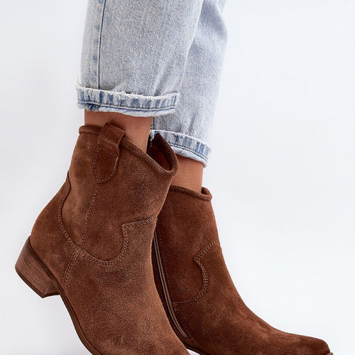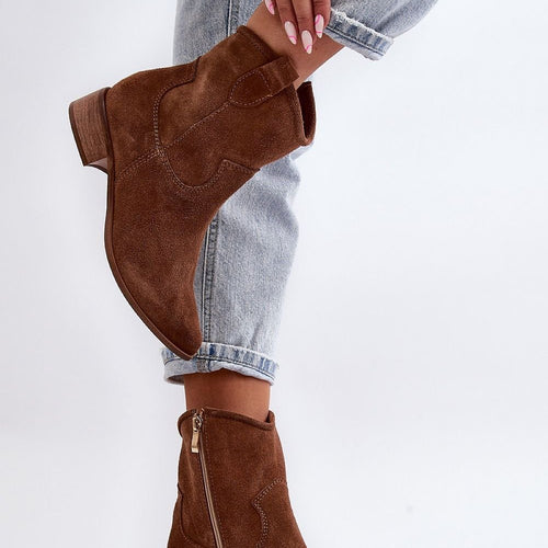 Women's fashionable cowgirl style boots are a HIT for many seasons! Made of natural suede. Set on a low heel. Fastened with a zipper on the side. Pointed nose will optically slenderize the legs. Do not wait any longer and buy them today! fabric ~skóra naturalna zamszowa Footbed natural leather Upper height 14 cm Heel height 4 cm Size Insole...