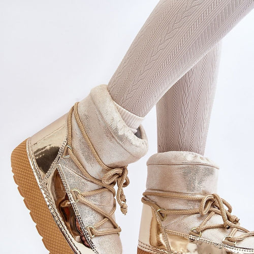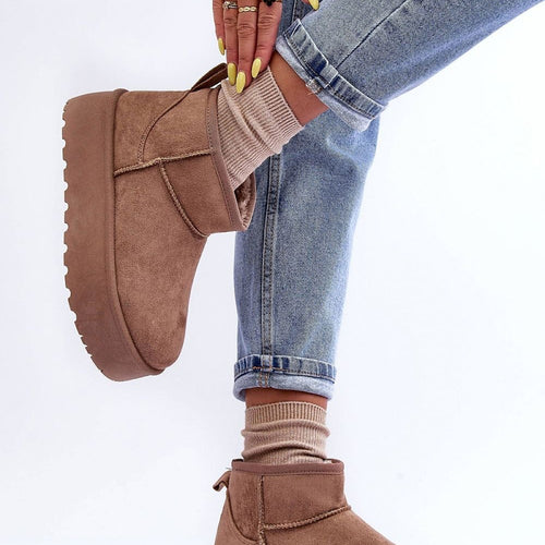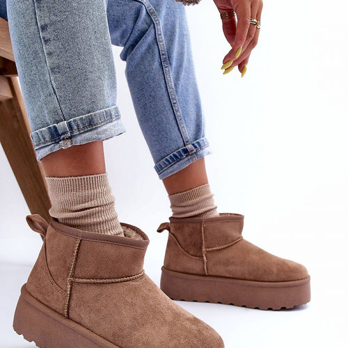 Snow boots are the perfect choice for cold days. The shoes are made of eco-suede leather. Fur around the ankle, while the interior has been insulated with thick eco fur. fabric imitation leather suede warmers fur Footbed fur Upper height 16 cm Platform height 3 cm Size Insole lenght 36 23 cm 37 23.5 cm 38 24 cm 39 24.5...