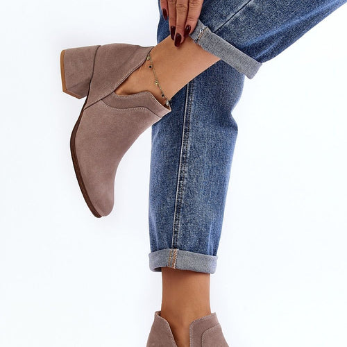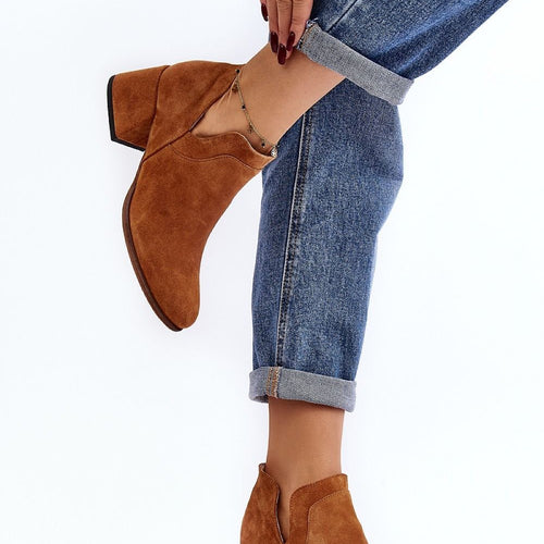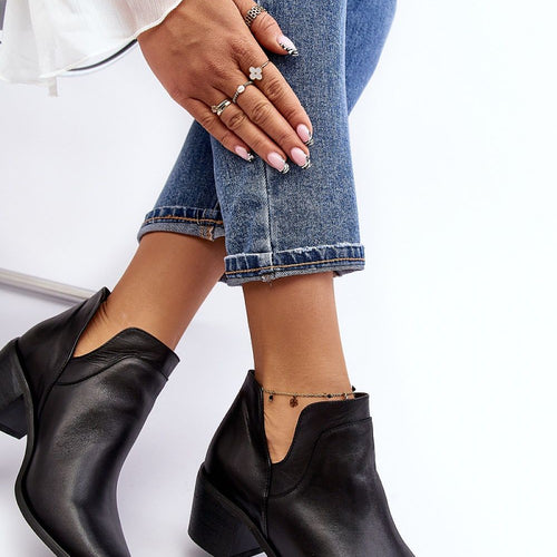 Women's slip-on boots were made of high-quality natural leather. Model with fashionable cutouts on the sides of the upper. The soft insole will provide comfort during use. In addition, the heel counter is stiffened. Set on a low heel in the form of a block. These boots will go well with many styles! You should have them in your closet!...