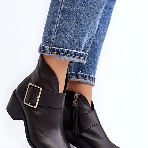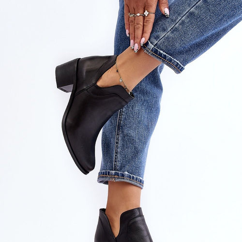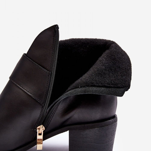 Classic women's boots ideal for many autumn outfits. Made of eco leather. Set on a heel in the form of a stable post. Pointed nose will optically slenderize the legs. Zippered at the side. Ankle-length upper. fabric artificial leather Footbed artificial leather Upper height 10 cm Heel height 9.5 cm Size Insole lenght 36 23 cm 37 23.5 cm 38...