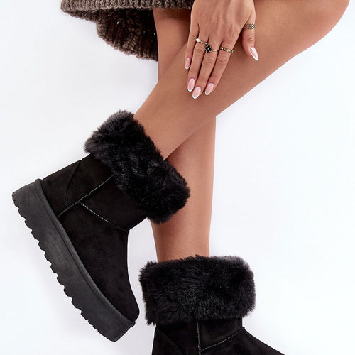 Fashionable snow boots are perfect for the autumn-winter season. Made of eco-suede. Set on a thick platform. Interior insulated with thick fur. Slip-on model with ankle-length upper. Ideal for those who appreciate comfort and warmth on cold days! You simply must have them! fabric imitation leather suede warmers fur Footbed fur Upper height 16 cm Platform height 4 cm Size...