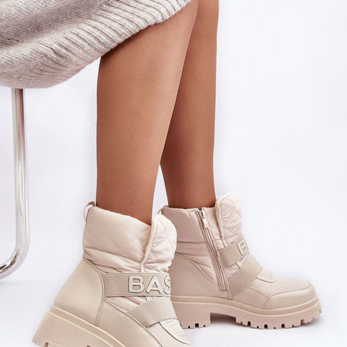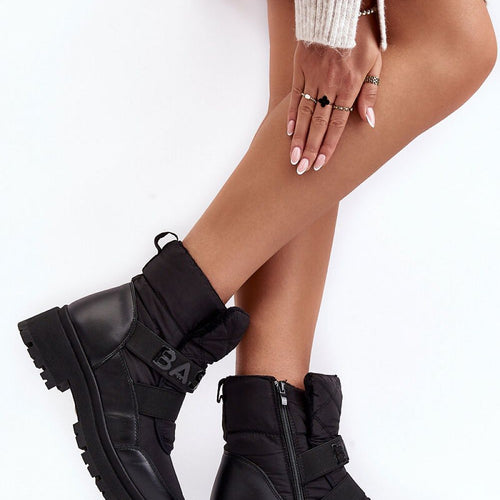 Women's snow boots are made of a combination of eco leather and textile material. Set on a flat heel and a platform. This model is fastened with a zipper on the side. The center is insulated with a thick shoe blanket. Two elastic straps at the front. Rounded nose pads. Stiffened heel counter. Check out our other offer of snow...