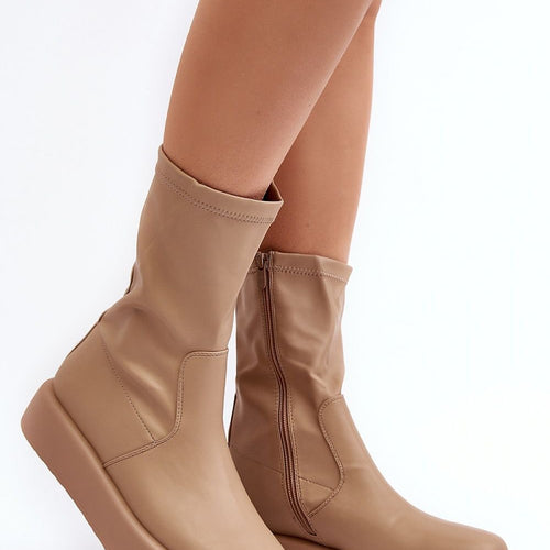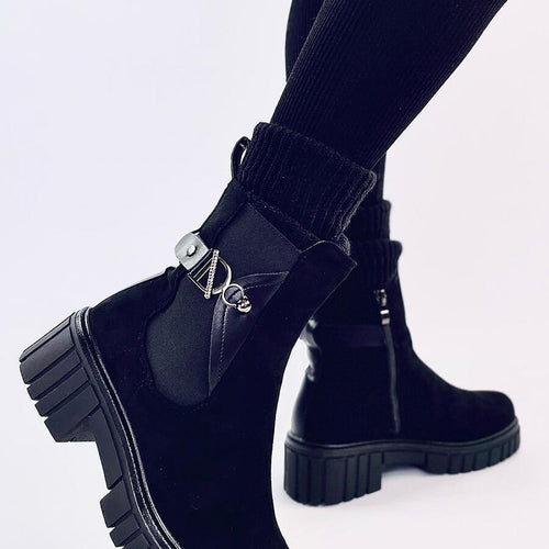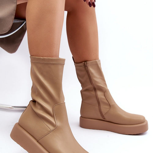 Suede boots - women's platform sneakers. They have a classic cut with an elastic insert on the side and a practical zipper closure. Subtle, yet stylish decoration diversifies the simple design of this model.... Don't wait and order them now! They are made of eco-suede, and the interior is lined with soft fur. fabric ecological suede warmers soft fur Heel...