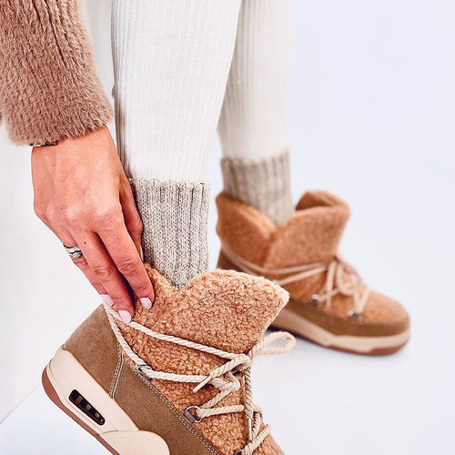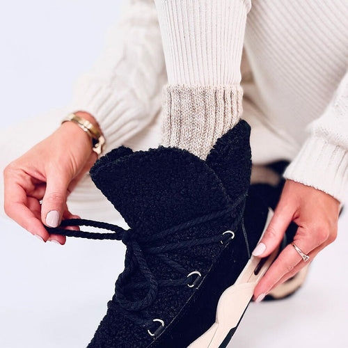 Women's snow boots - sneakers on a thick sole. Their designer cut is highlighted by the original lacing and impressive and warm sheepskin. Do not be persuaded any longer and order them today, and you will not regret it : ) They are made of eco-suede, and the interior is lined with fur. fabric ~zamsz ekologiczny + ko?uszek warmers fur...