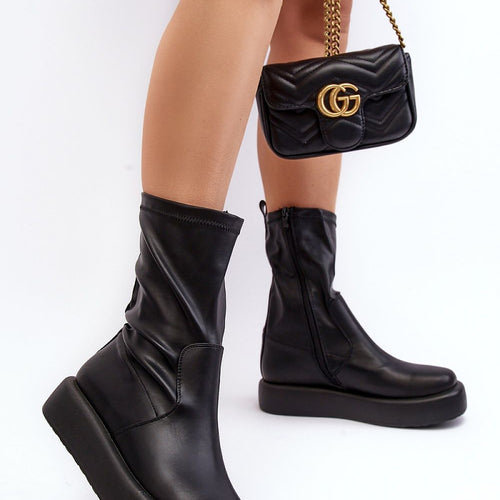 Stylish women's eco leather boots are a great choice for the autumn-winter season. Their massive platform gives them a modern look, while providing comfort while wearing them. This model is convenient to put on thanks to a practical zipper located on the inside of the upper. The lightweight shoe blanket insulation adds to their wearing pleasure, especially on colder days....