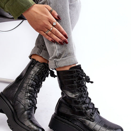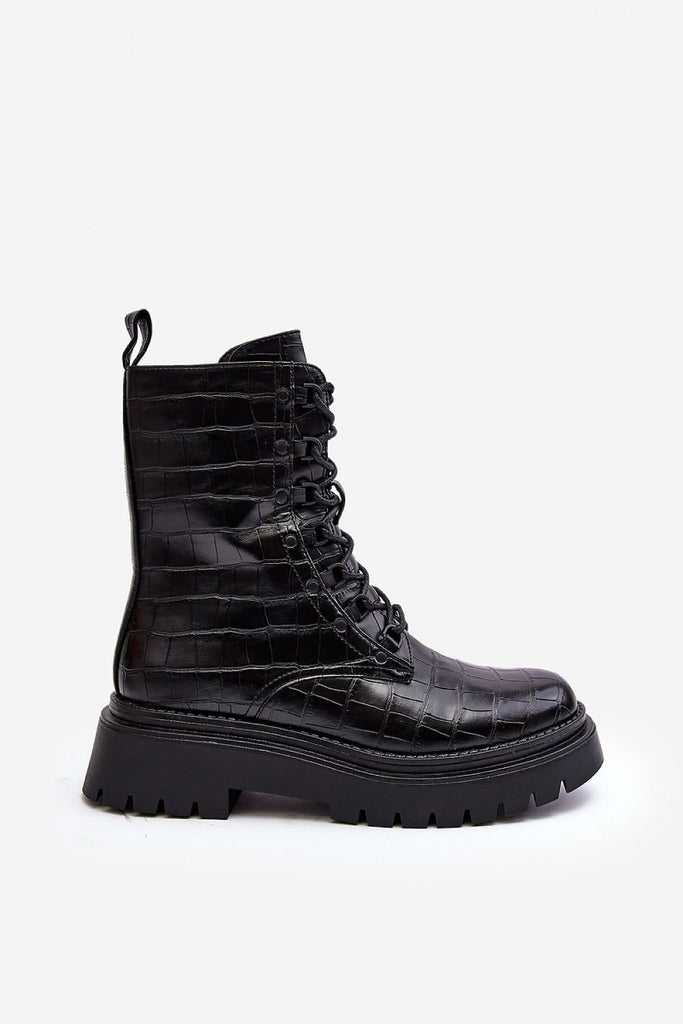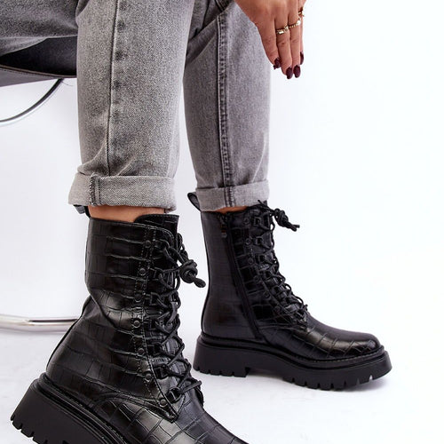 Women's boots made of eco leather. Set on a flat heel and a thick sole, which guarantees stability and comfort of wearing. Zipper on the side of the upper and additional lacing, ensuring a perfect fit. Rounded toe caps. The center is insulated with shoe blanket. Perfect for a variety of autumn-winter styling! fabric artificial leather warmers shoe cover Footbed...