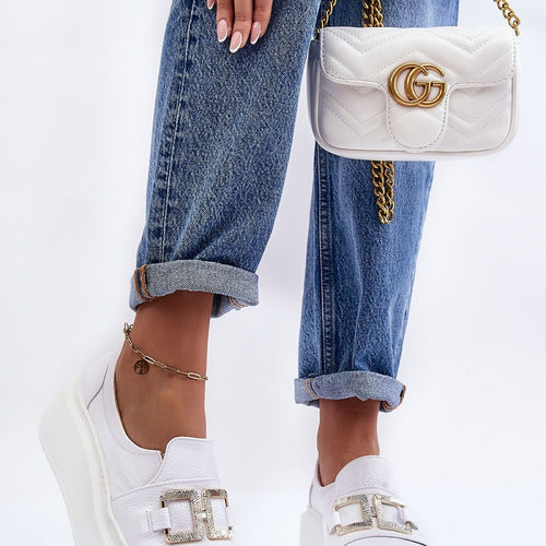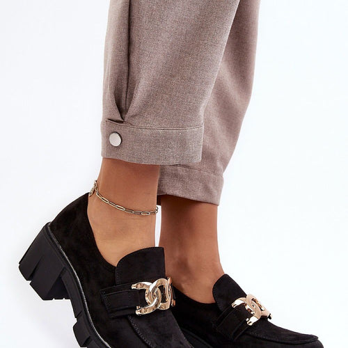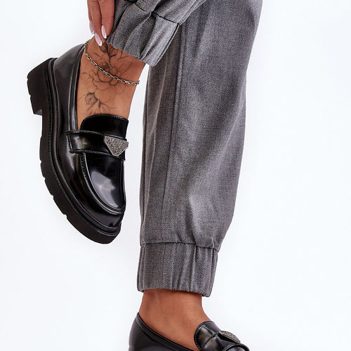 Elegant women's half shoes set on a massive platform and a flat, stable heel. Made of natural leather. Classic slip-on model. The heel counter is stiffened, the noses are rounded. On the front there is a plastic ornament. Soft leather insole will ensure comfortable use of the shoes. These shoes will work well in many stylings! Be sure to check...