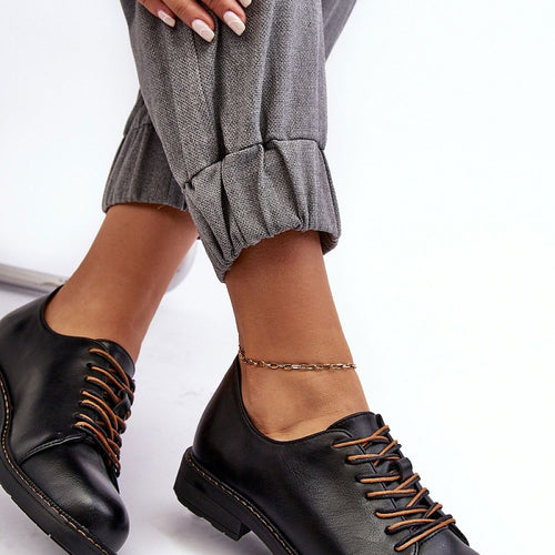 Fashionable women's half shoes made of eco leather. Set on a flat, stable heel. The noses are rounded. The heel counter is stiffened. The insole made of natural leather will provide comfort while using the shoes. The model is classically laced. These shoes will prove useful in many autumn stylizations! Be sure to check out our entire collection of half...