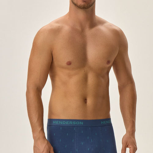 Job boxers are men's underwear with a tight cut. The set includes two pairs of cotton boxers made of soft and skin-friendly fabric: plain navy blue boxers and green boxers with a trendy geometric pattern. They fit perfectly to the body, and the wide waistband prevents the underwear from slipping down. Cotton 95 % Spandex 5 % Size Hips width...