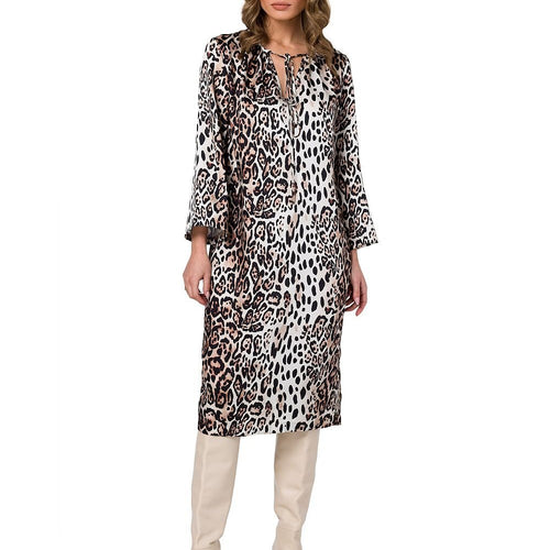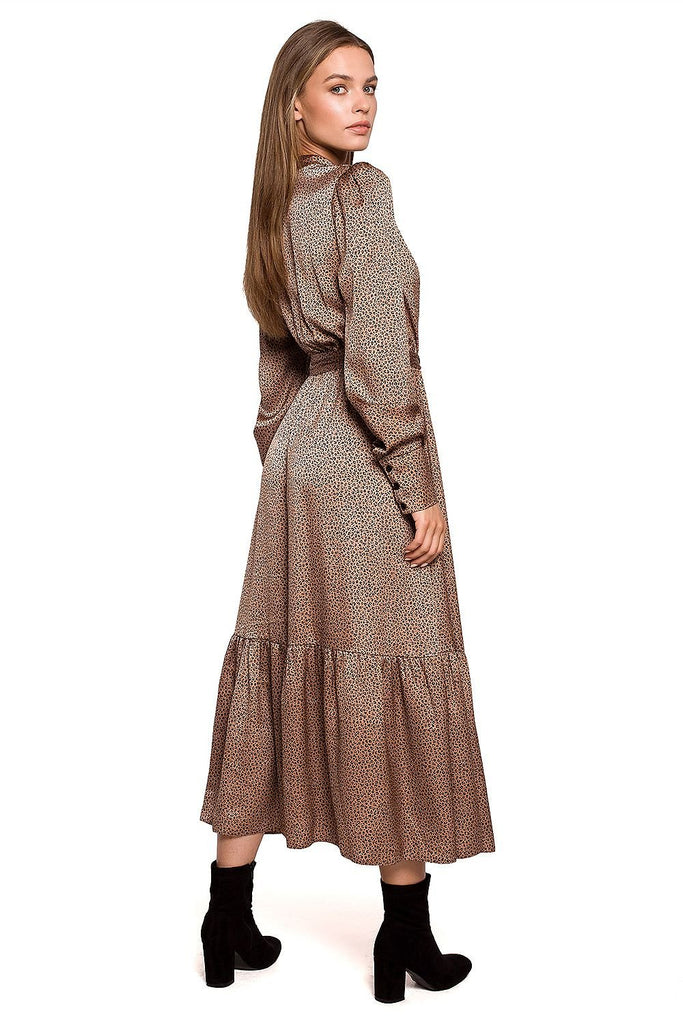 Maximum length, maximum comfort and maximum elegance leopard print dress with a ruffle at the bottom and a stand-up collar at the neck. Dress has a covered zipper, no lining. Ideal for autumn cold weather with boots. Polyester 100 % Size Lenght Chest Waist L 133 cm 100 cm 60 cm M 131 cm 94 cm 56 cm S 129...