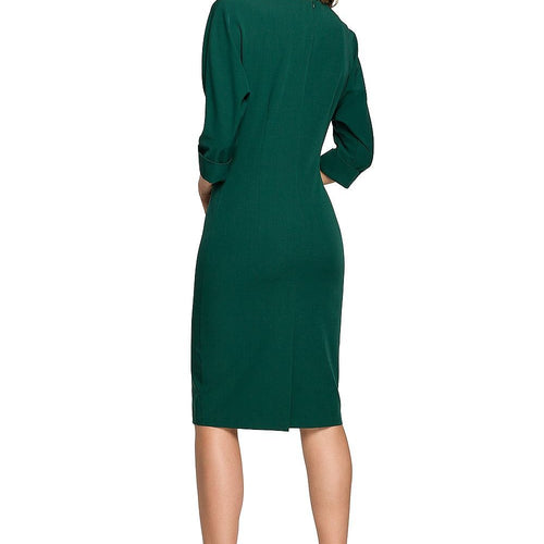 Class lies in the simplicity of this pencil dress with a double overlap front. The dress fastens with a covered zipper. Spandex 5 % Polyester 65 % Viscose 30 % Size Lenght Hips Chest Waist L 106 cm 104 cm 96 cm 82 cm M 105.5 cm 98 cm 90 cm 76 cm S 105 cm 92 cm 84 cm...