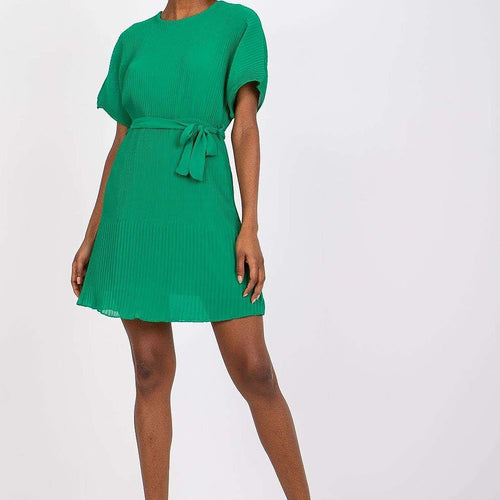 Pleated summer dress for many occasions, with short sleeves in the form of a frill. The dress has a lining, an elastic waistband, and a heart neckline. The dress has a flared cut, complemented by a waist belt in addition to frills. Spandex 5 % Polyester 95 % Size Total length Chest one-size-fits-all 105 cm 88 cm