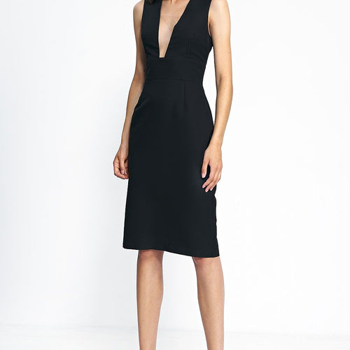 Black dress of a fitted cut with a deep neckline. It was made of smooth material with cotton. The upper part of the dress is lined. It looks beautiful in duet with a classic stiletto. Cotton 49 % Polyester 48 % ~Spandex 3 % Size Lenght Hips Chest Waist 34 106.5 cm 93 cm 87 cm 70 cm 36 107.5...