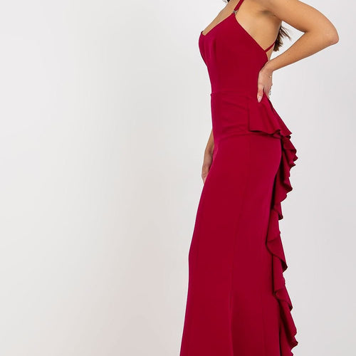 The model is wearing a size 36 Evening long strapless dress. The dress is fastened with a covered zipper. Dress with decorative ruffle. A proposition for many occasions. Spandex 3 % Polyester 77 % Viscose 20 % Size Chest Waist 36 82 cm 72-80 cm 38 86 cm 78-86 cm 40 91 cm 84-90 cm 42 96 cm 88-96 cm...