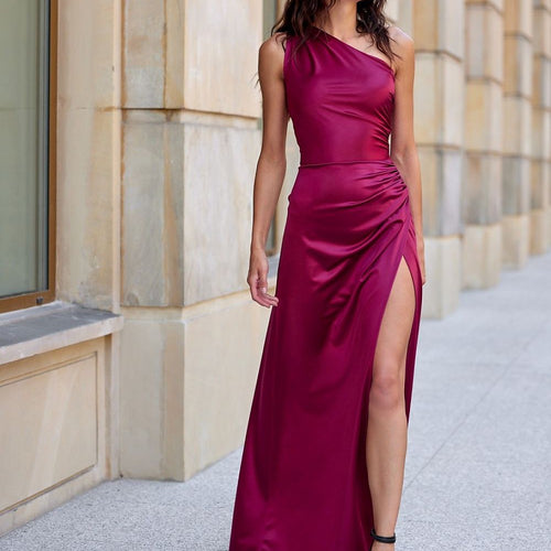 The Inez dress is made of a pleasant, flowing satin fabric that adds chic and elegance. The dress stands out with an interesting neckline revealing one shoulder, thanks to the use of a wide strap with gathers. The perfect fit at the waist and a long, flowing skirt with a slit on the leg will perfectly highlight the silhouette's assets....