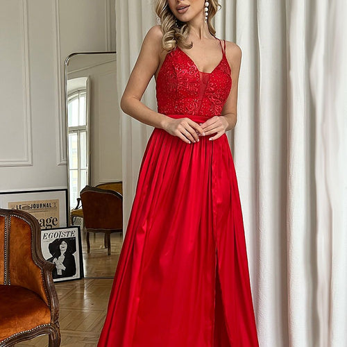 Beautiful satin creation combined with a lace top on thin straps. The bottom is flowing with a slit on the leg. The dress has a lining, fastened with a covered zipper. The model fits great, perfectly tailored, available in fashionable colors. Polyester 30 % Viscose 70 % Size Lenght Chest Waist 34 150 cm 98 cm 62 cm 36 151...