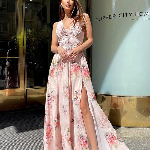 Long dress, made of airy fabric, dyed in beautiful flowers. The top has a delicate neckline, the bottom is double-layered with a slit on the leg adding charm to the creation. Ideal for casual parties, weddings and summer evening outings. Polyester 30 % Viscose 70 % Size Lenght Chest Waist 34 150 cm 84 cm 64 cm 36 151 cm...