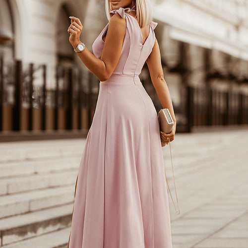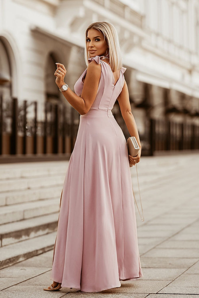 Very girly model of dress, available in beautiful colors. The top is tied at the shoulders in beautiful bows. The bottom of the dress is long with a slit on the leg, very light and airy. Model ideal for prom, New Year's Eve and other special events. Polyester 30 % Viscose 70 % Size Lenght Chest Waist 34 152 cm...