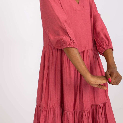 Loose cut dress with 3/4 sleeves and wide frill at the bottom. Perfect for many occasions. Polyester 100 % Size Chest L/XL 91-96 cm S/M 82-86 cm