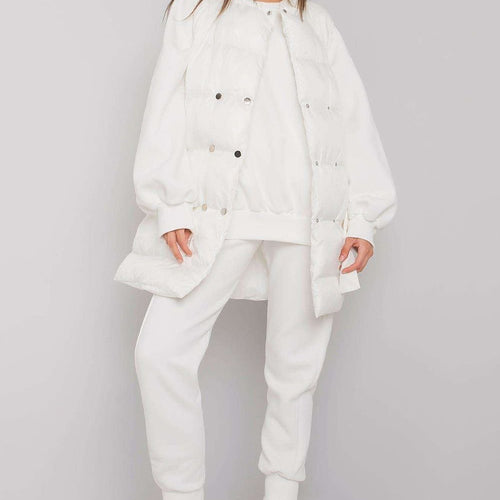 An interesting set consisting of a down vest, a sweatshirt and sweatpants. The vest is fastened with press studs, on the sides there are slip pockets. Straight cut sweatshirt with long sleeves. Sweatpants with tie at waist and slant pockets. Cotton 70 % Polyester 30 % Size Lenght Chest Waist S/M 84/69/99 cm 114/130 cm 74 cm