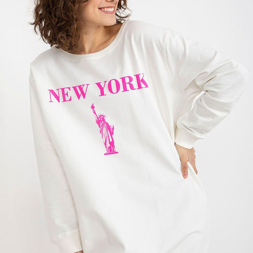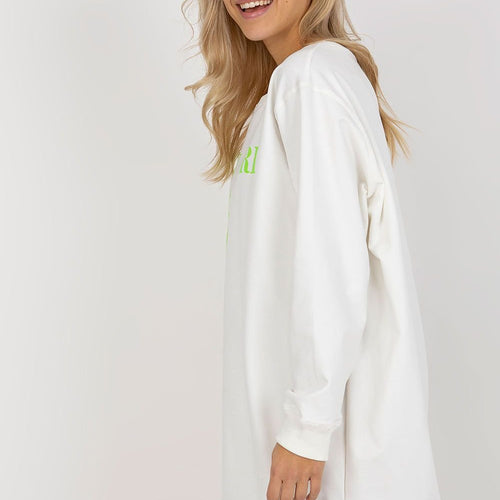 Women's oversized casual sweatshirt is a perfect choice for women who value comfort and a fashionable look. The sweatshirt stands out with a dominant pattern with a striking print on the front, which gives it character. Made of high-quality blend of cotton, polyester, and elastane, it provides softness, durability, and a proper fit. The longer length model is perfect for...