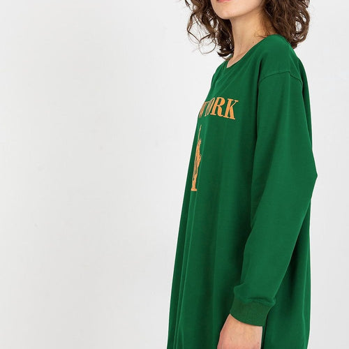 Women's oversize casual sweatshirt is a perfect choice for women who value comfort and a fashionable look. The sweatshirt stands out with a dominant pattern with a striking print on the front, which gives it character. Made of high-quality blend of cotton, polyester, and elastane, it provides softness, durability, and a proper fit. The longer length model is perfect for...