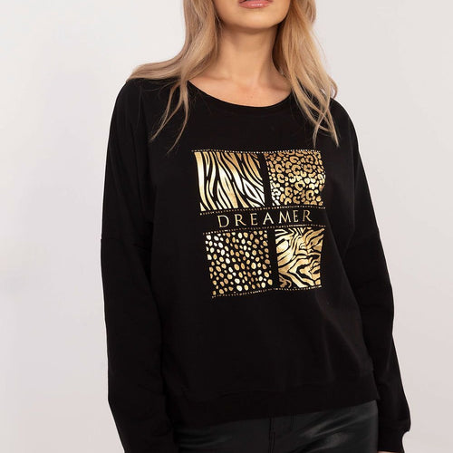 A unique women's sweatshirt with a casual style is a great everyday choice for women who appreciate original details. Its unique character is emphasized by the print complemented by subtle rhinestones on the front, which give the whole thing a fashionable expression. Made of high-quality cotton with added elastane, the sweatshirt is soft, stretchy and extremely comfortable to wear. The...