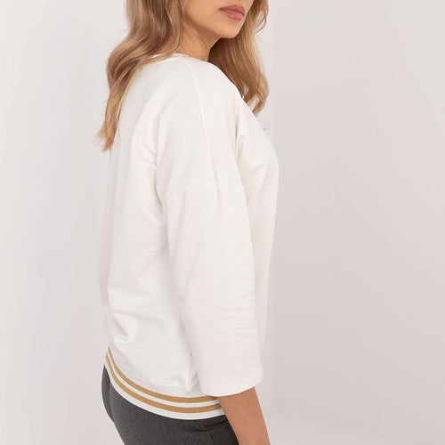 Everyday blouse in a casual style, perfect for comfortable, daily outfits. Made of soft cotton with elastane, it provides comfort and gentle elasticity, perfect for active days. The blouse of standard length with 3/4 sleeves is a practical choice for every season. The front is decorated with a stylish print, which adds a unique character and a fashionable accent. The...