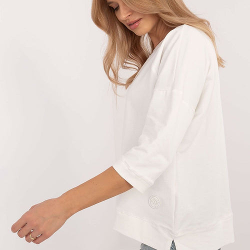 Casual blouse for everyday wear, combining comfort and style in perfect proportions. Made of high-quality cotton with a touch of elastane, it provides comfort and gentle flexibility, allowing for freedom of movement. The standard length blouse with 3/4 sleeves is a great choice for daily stylizations. The round neckline emphasizes the universal character, suitable for different body types. The front...