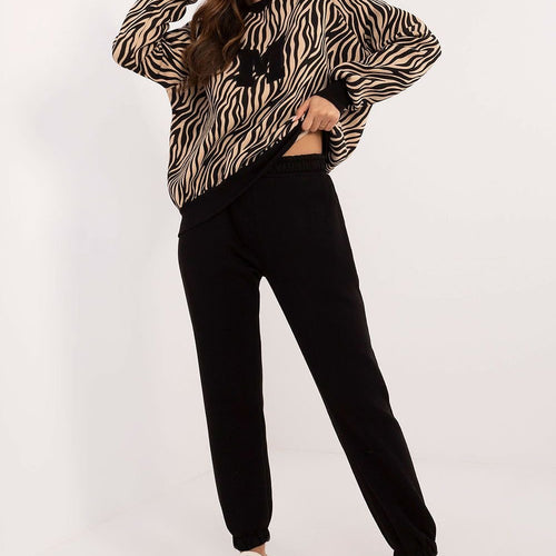 Women's casual set, ideal for everyday wear, consists of a T-shirt, sweatshirt and leggings. The set has a plain leggings design with a subtle animal motif on the sweatshirt, which adds a modern touch. Made from a comfortable blend of cotton and polyester, it provides comfort and durability throughout the day. The leggings feature long, tapered legs and a high...