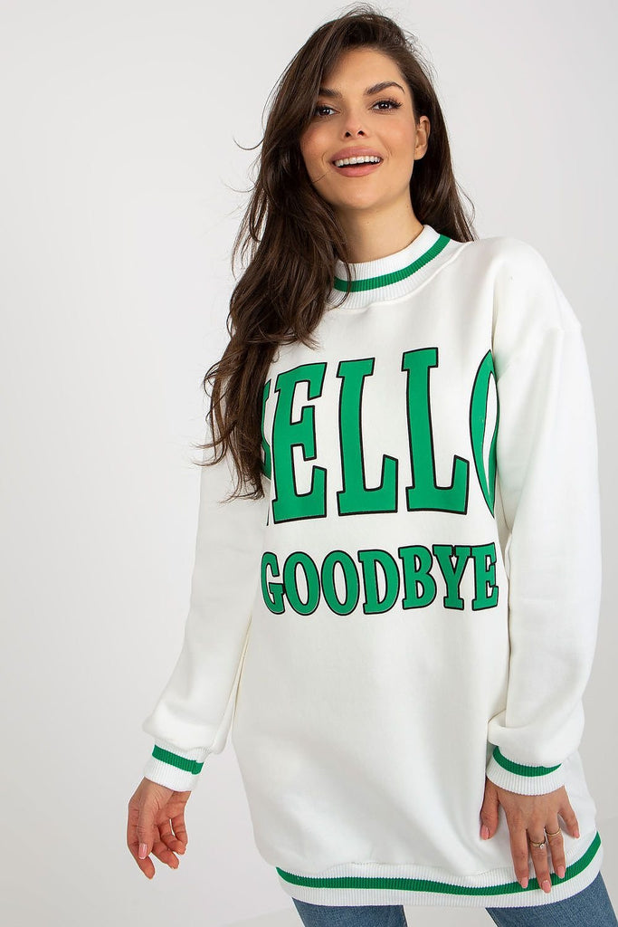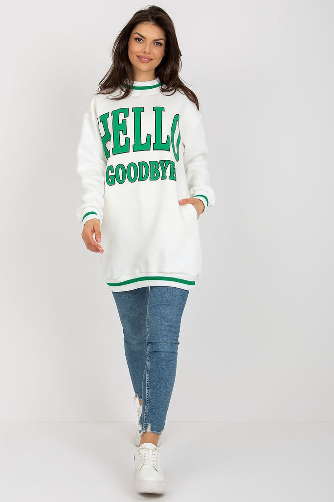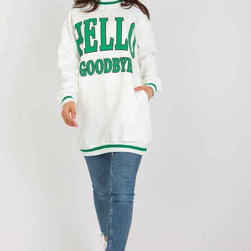 This sweatshirt is a great option for casual days. It features long sleeves and a round neckline for comfortable wear. The front of the sweatshirt features an eye-catching inscription that adds character and style. This is a great option for adding originality to your everyday closet. Cotton 70 % Polyester 30 % Size Total length Chest one-size-fits-all 67 cm 120...