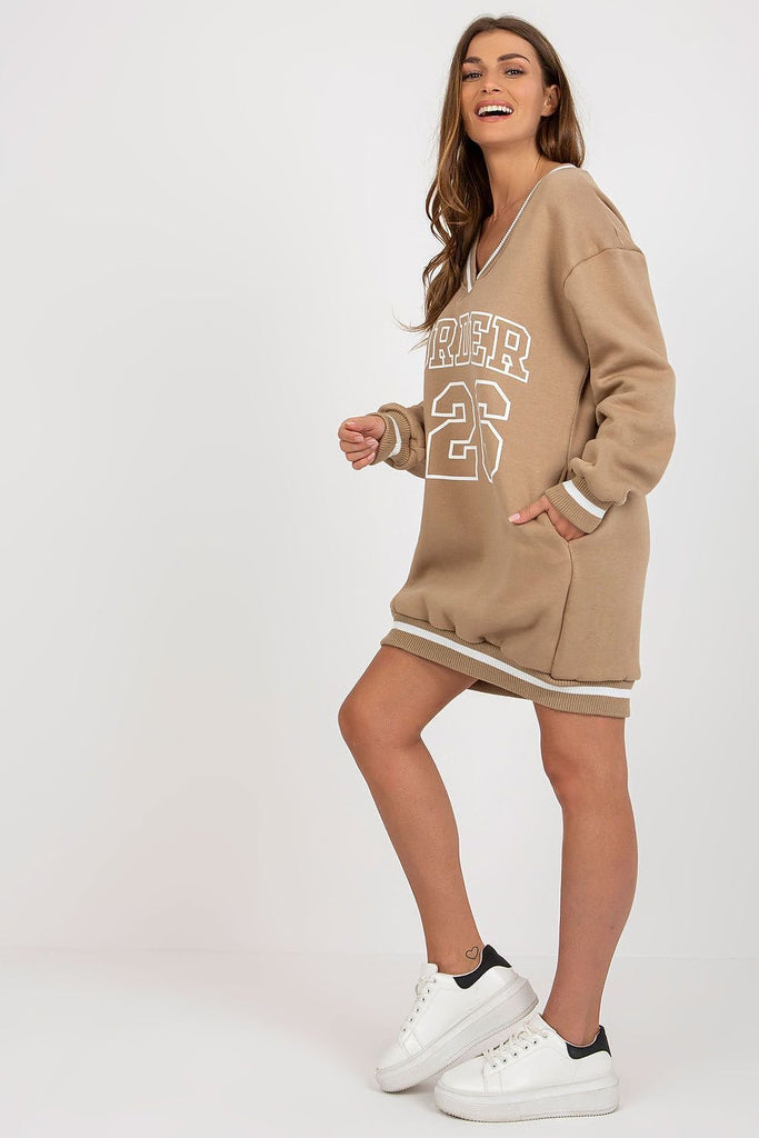 This long sweatshirt is the perfect choice for casual days. With long sleeves, convenient side slip pockets and ribbed cuffs with contrasting stripes, this sweatshirt combines comfort and style. The print on the front adds character and originality. It's a great option for everyday wear, providing both comfort and a fashionable look. Cotton 70 % Polyester 30 % Size Total...