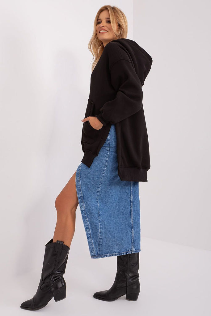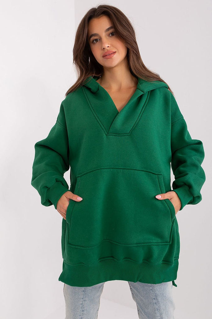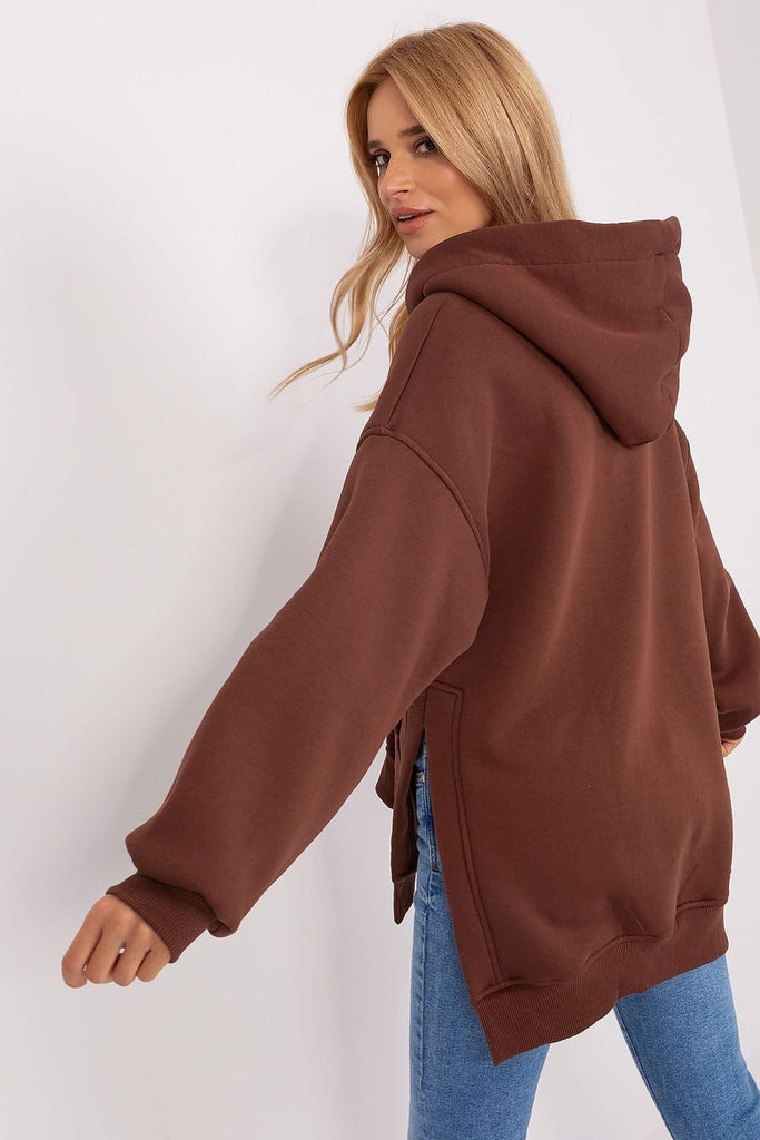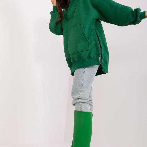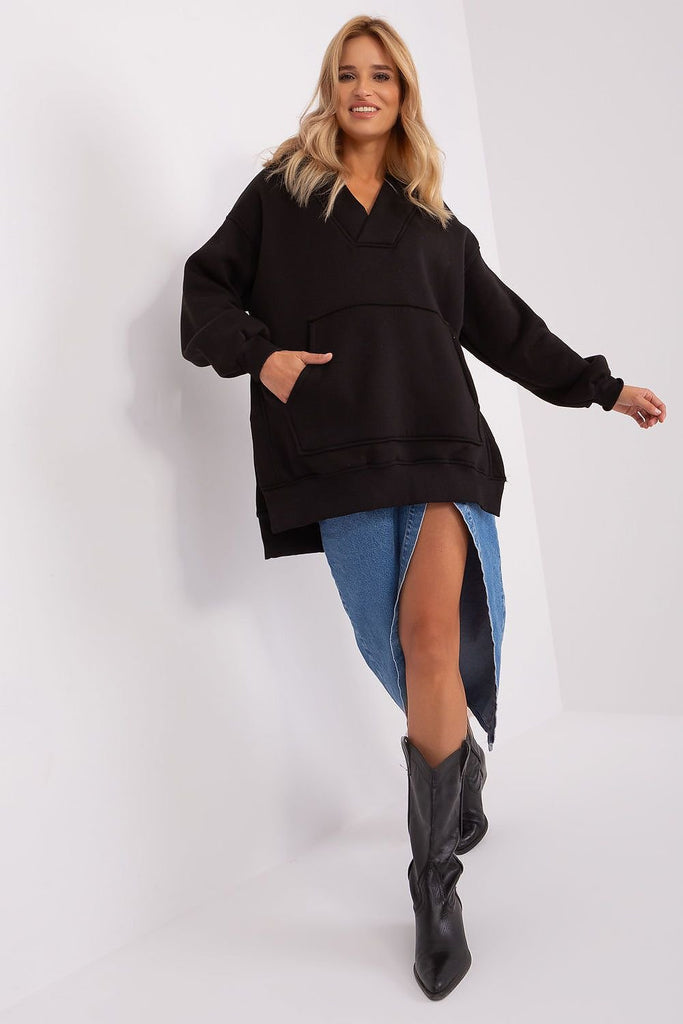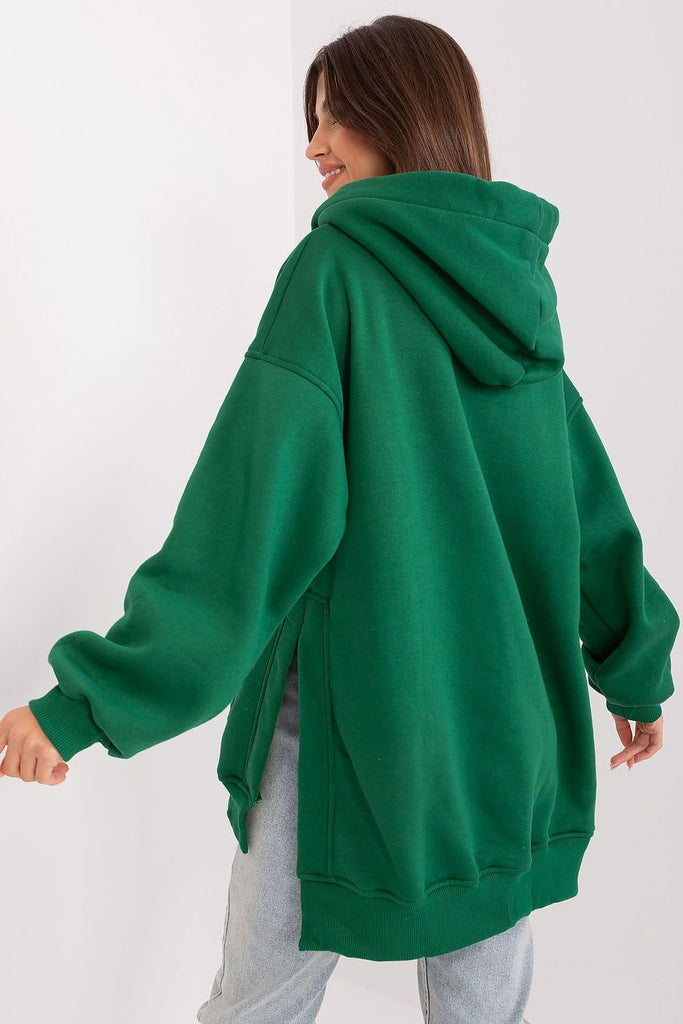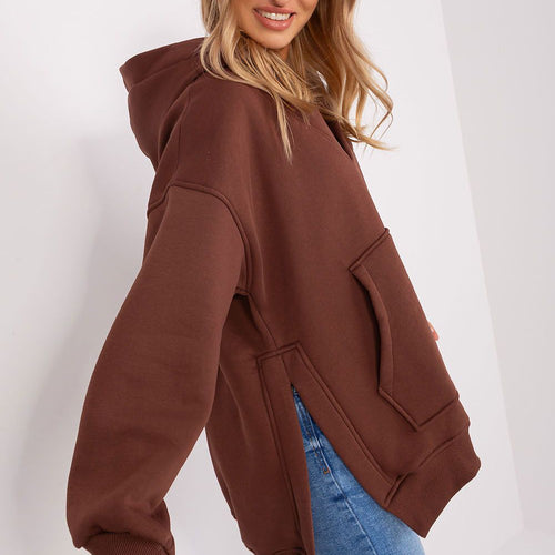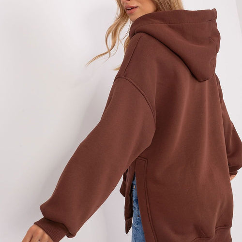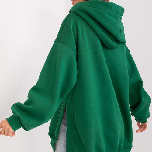 This women's sweatshirt combines sporty style with comfort and original design. Made of high-quality cotton, it guarantees comfort for everyday wear. It has long sleeves and a practical hood, which is both functional and fashionable. The sweatshirt has a heart neckline which adds to its charm and feminine expression. In addition, the bottom of the sweatshirt is asymmetrical with slits,...