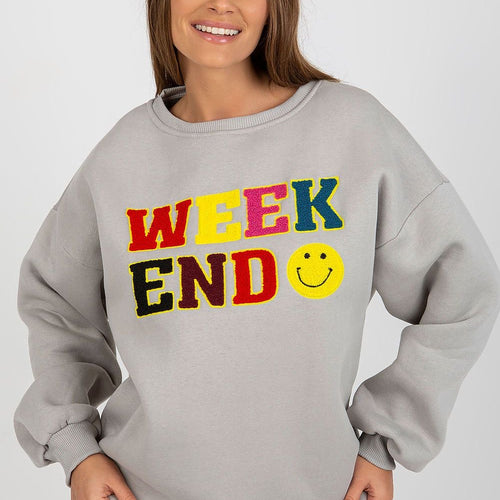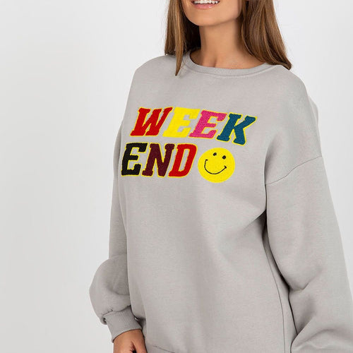 This gray women's sweatshirt is an excellent choice for everyday wear. Made of soft and pleasant to the touch material, it provides comfort and convenience. It has long sleeves and a round neckline, making it a versatile piece of clothing. On the front of the sweatshirt there is a sewn-in inscription, which gives it character and originality. This sweatshirt will...