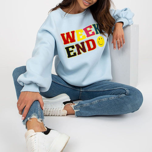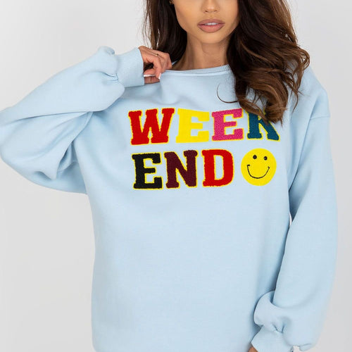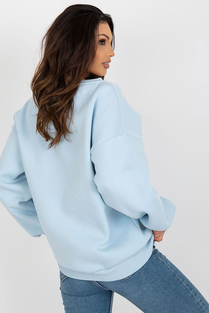 This blue women's sweatshirt is an excellent choice for everyday wear. Made of soft and pleasant to the touch material, it provides comfort and convenience. It has long sleeves and a round neckline, making it a versatile piece of clothing. On the front of the sweatshirt there is a sewn-in inscription, which gives it character and originality. This sweatshirt will...