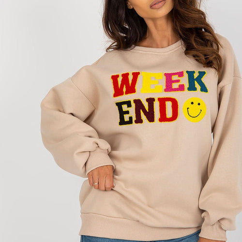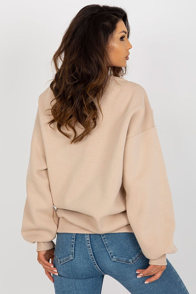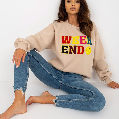 This beige women's sweatshirt is an excellent choice for everyday wear. Made of soft and pleasant to the touch material, it provides comfort and convenience. It has long sleeves and a round neckline, making it a versatile piece of clothing. On the front of the sweatshirt there is a sewn-in inscription, which gives it character and originality. This sweatshirt will...