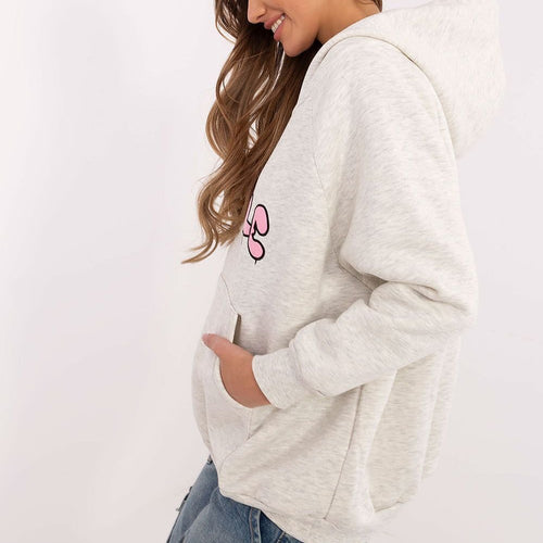 Women's casual sweatshirt is a perfect choice for women who value comfort and a fashionable look. Made of soft and durable blend of cotton and polyester, it ensures comfortable wear every day. The model features a smooth pattern and standard length, making it a versatile wardrobe piece. Long sleeves and a hood emphasize the classic cut of the sweatshirt, while...