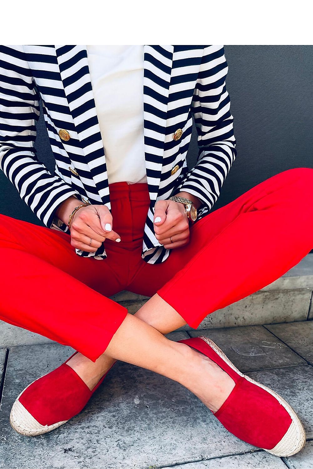 Espadrilles for women on a flat sole. These are the perfect shoes for fans of fashionable solutions that work in every situation! Their classic design is highlighted by beautifully shimmering finish, which gives them unique character. They are made of ecological suede and the inside is lined with fabric.