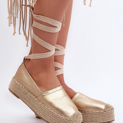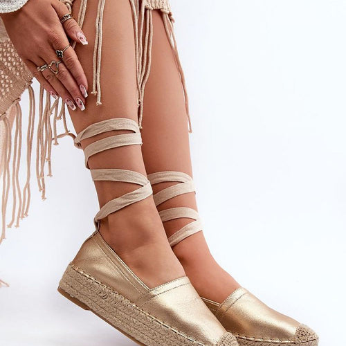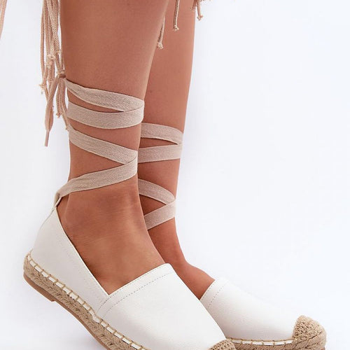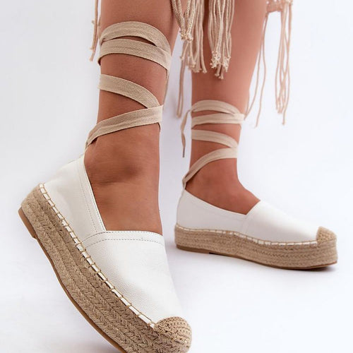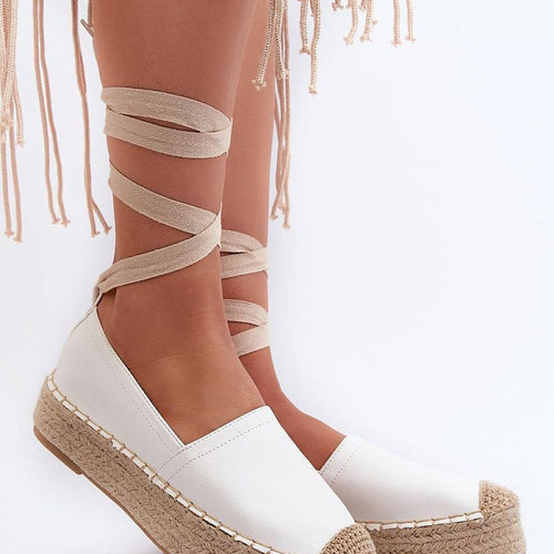 Classic flat-soled espadrilles. Insole made of eco leather. An interesting model that you should have in your wardrobe! Eco leather espadrilles are tied around the foot. The fabric strap is adjustable. The sole is non-slip and woven. Be sure to check out the rest of our women's espadrille collection as well. fabric artificial leather Footbed artificial leather Upper height 5.5...