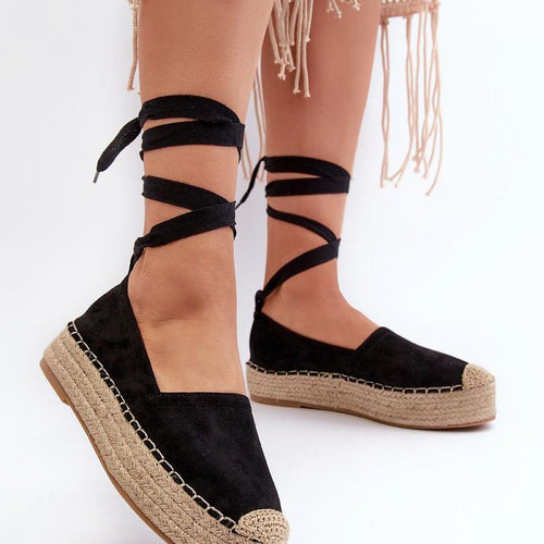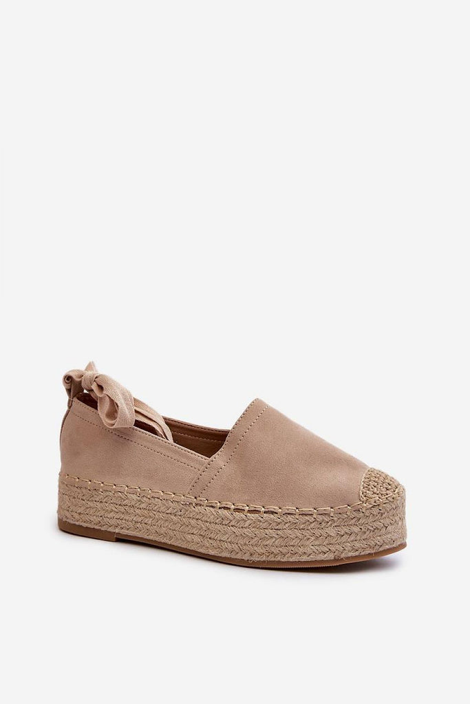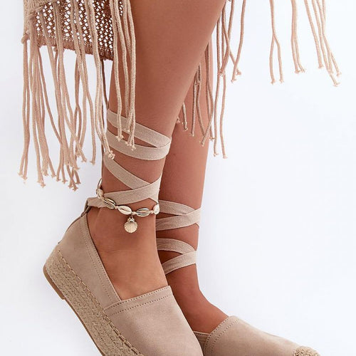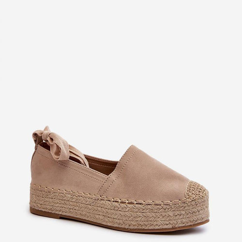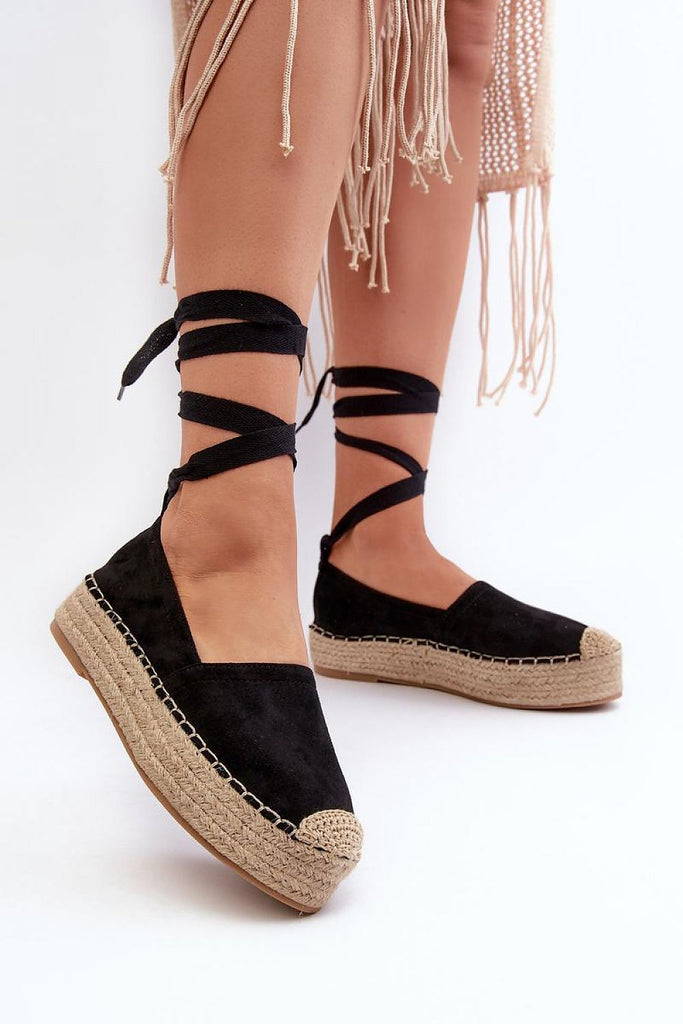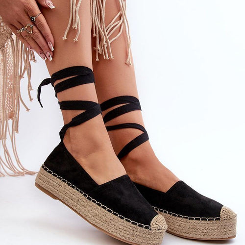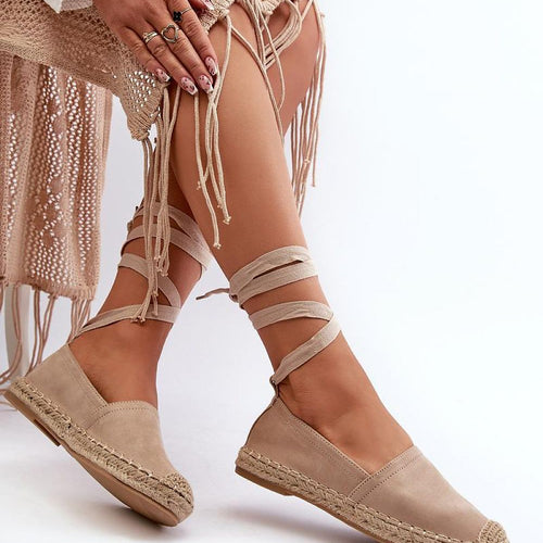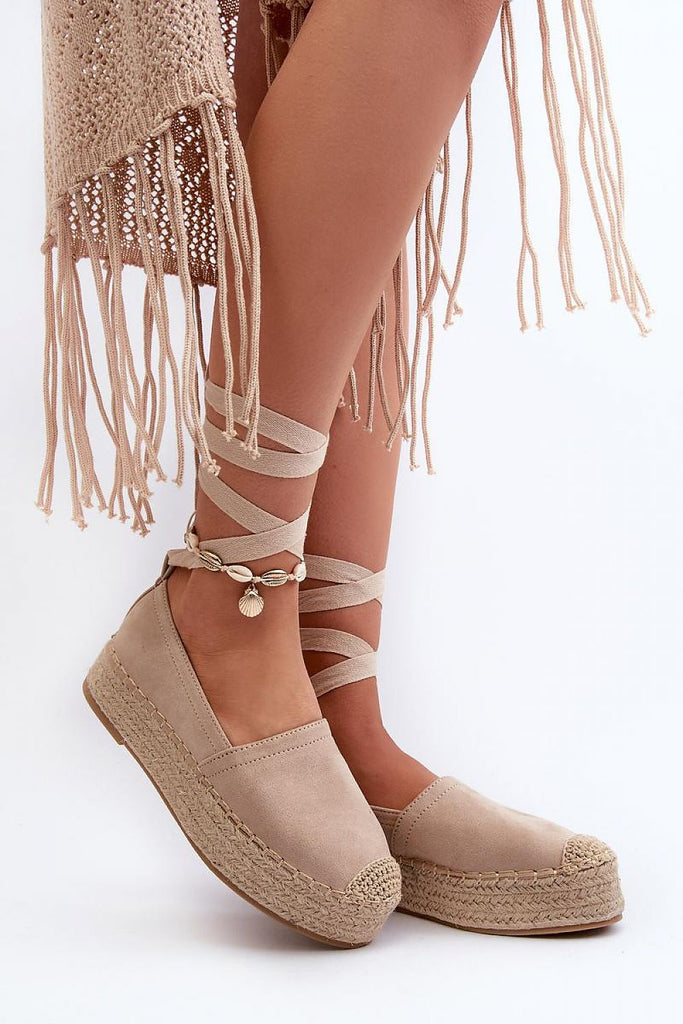 Classic espadrilles with a flat sole. Insole made of eco leather. An interesting model that you should have in your wardrobe! The eco-suede espadrilles are tied around the leg. The fabric strap is removable. The sole is non-slip and braided. Be sure to check out our entire collection of women's espadrilles. fabric imitation leather suede Footbed artificial leather Upper height...