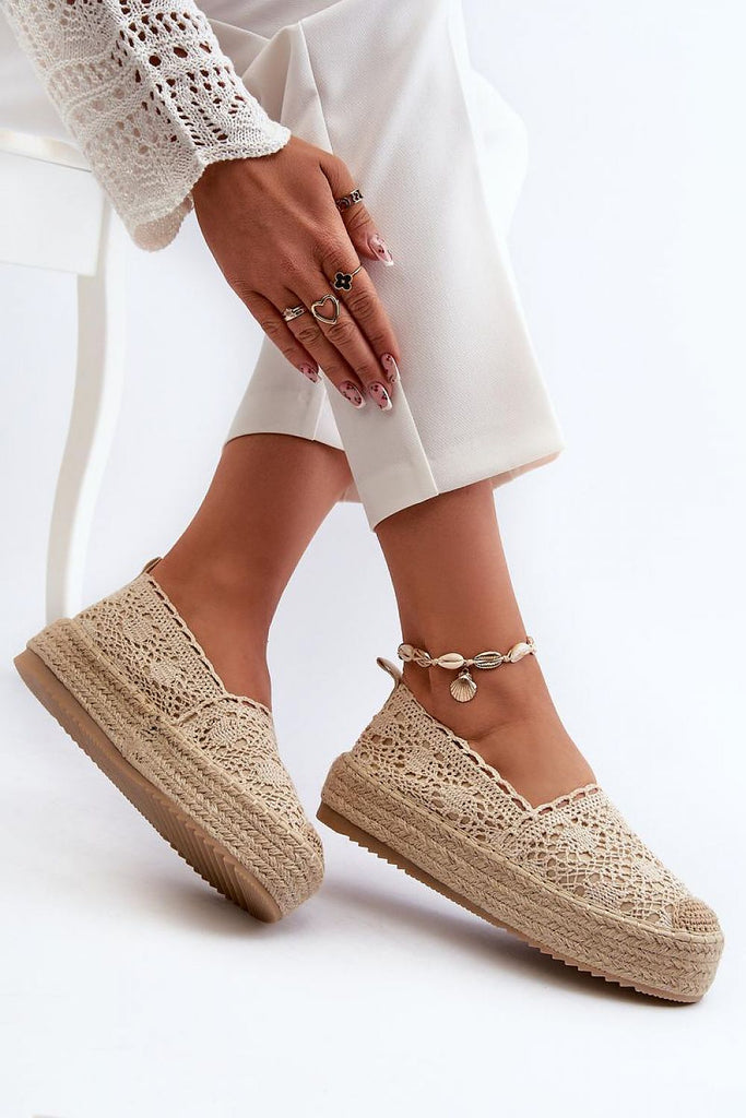 Women's espadrilles on a platform with an eye-catching braided design, adding subtlety to every summer outfit. The lace upper gives them a unique charm, accentuating feminine elegance. This footwear not only looks stylish, but also provides comfort for walking, perfect for summer strolls or outdoor gatherings. fabric fabric Footbed fabric Upper height 5.5 cm Platform height 4 cm Size Insole...