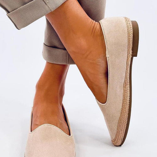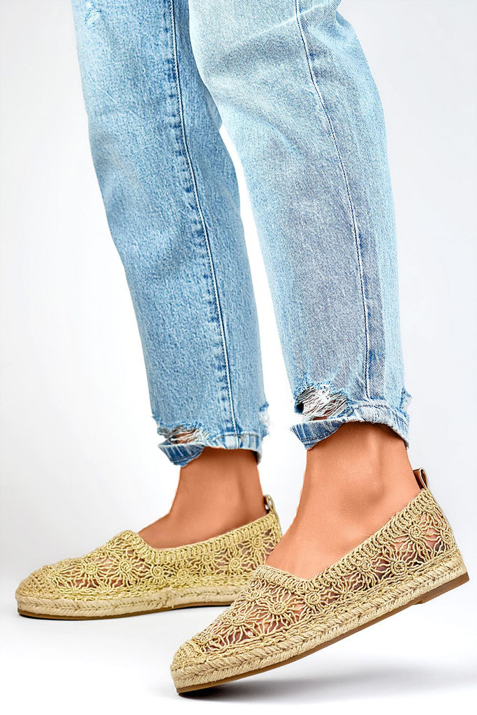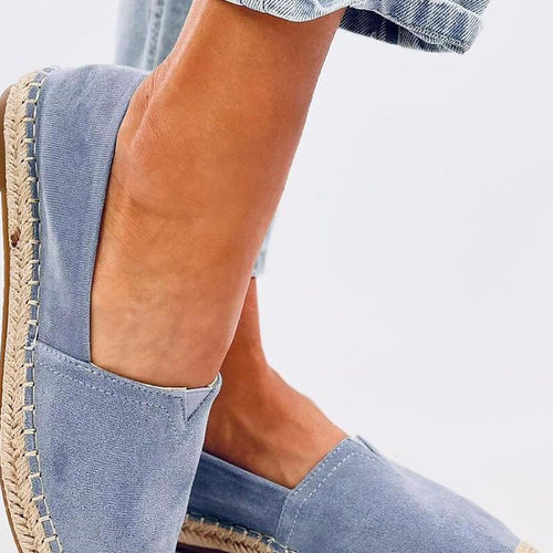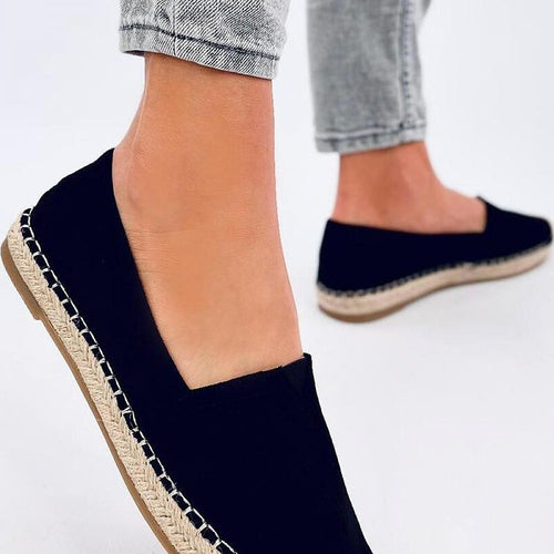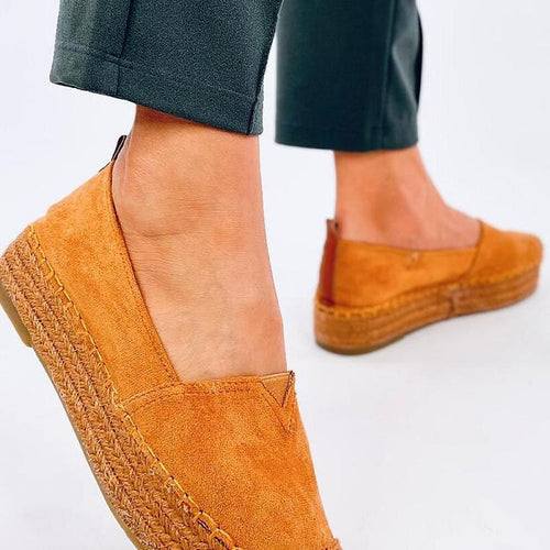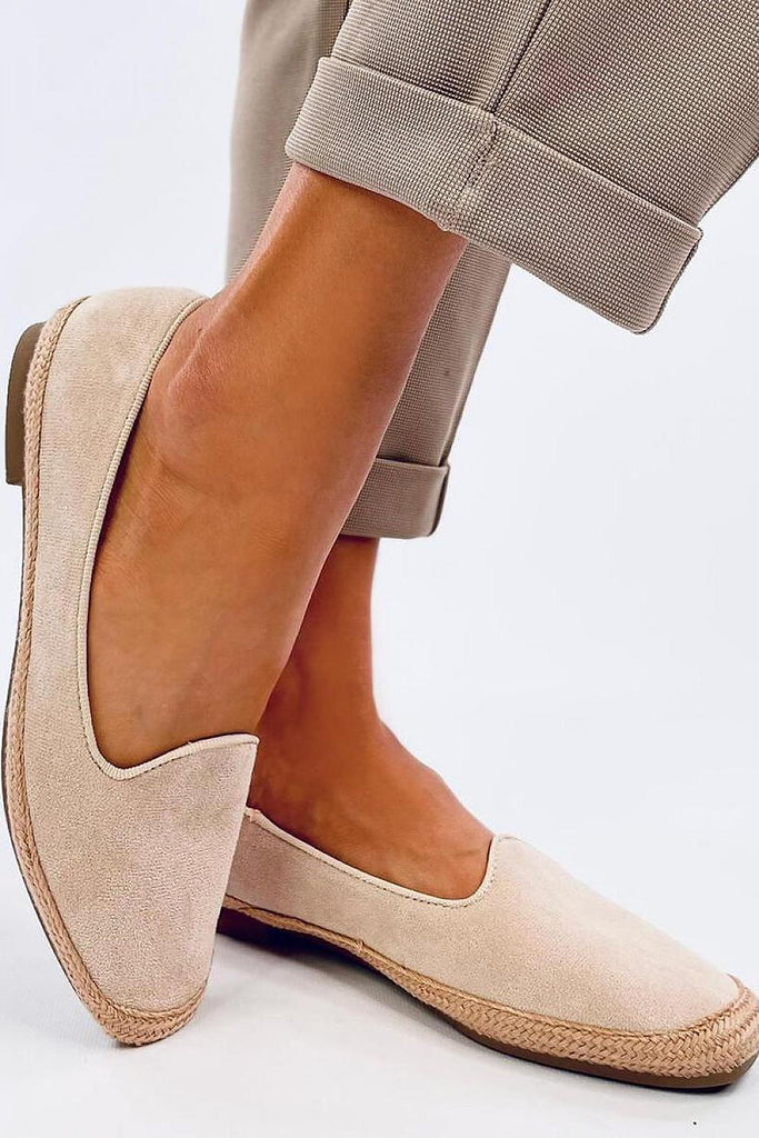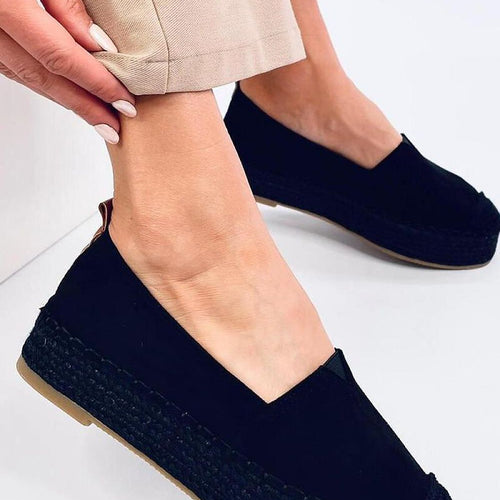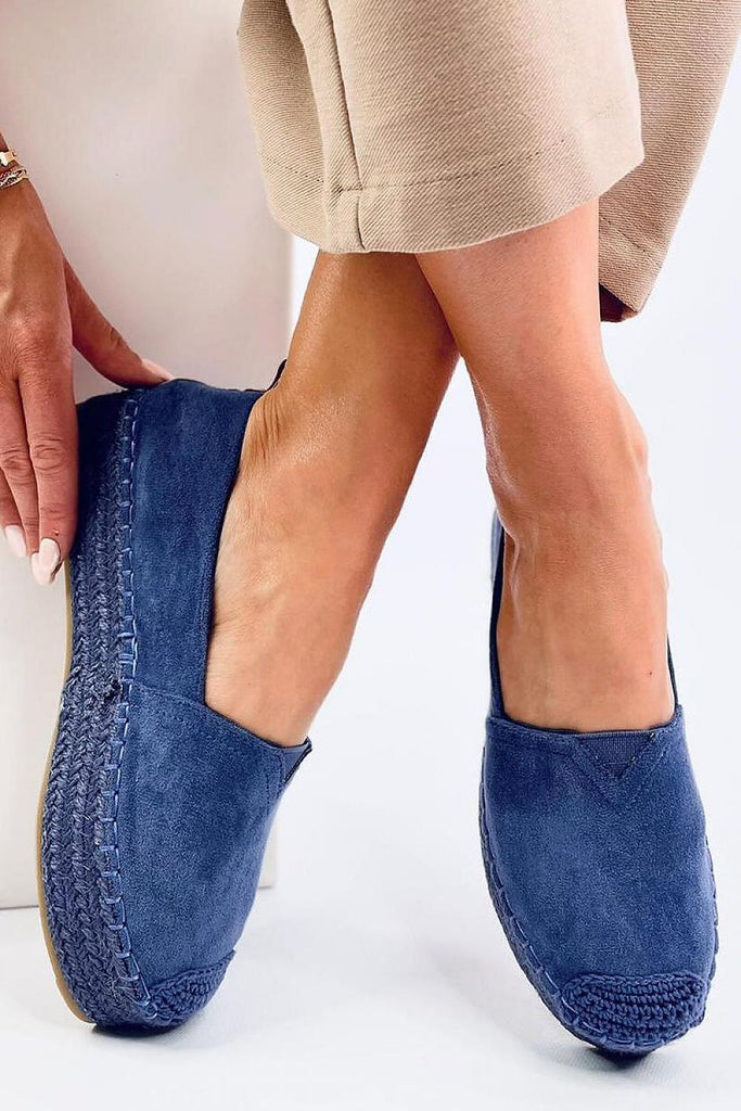 Women's suede ballerinas - espadrilles. The model is distinguished by a graceful cut with a linen finish, which refers to the summer period. However, the soft inner insole with a cushion will ensure comfort with every step.... These are the perfect shoes for every day! Outer material - ecological suede. fabric ecological suede Size Insole lenght 36 23,5 cm 37...