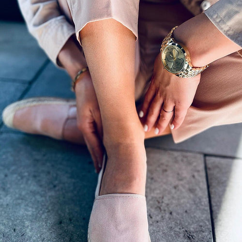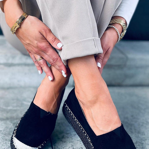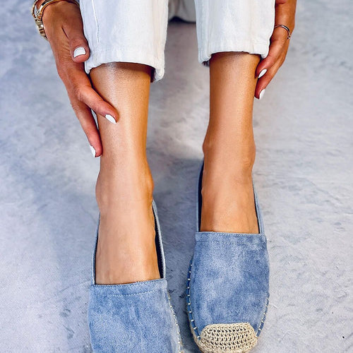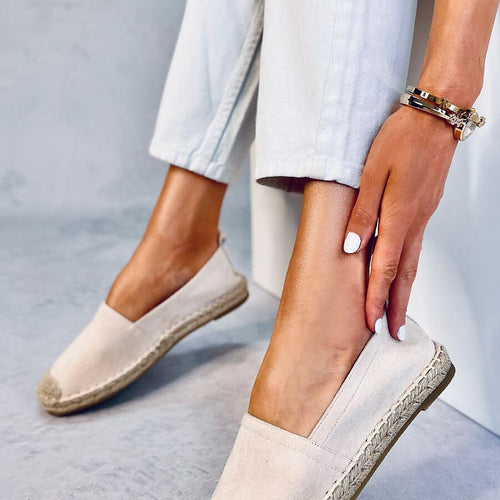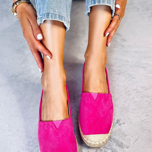 Espadrilles for women on a flat sole. These are the perfect shoes for fans of fashionable solutions that work in every situation! Their classic design is highlighted by beautifully shimmering finish, which gives them unique character. They are made of ecological suede and the inside is lined with fabric. fabric ecological suede Footbed fabric Size Insole lenght 36 22,5 cm...
