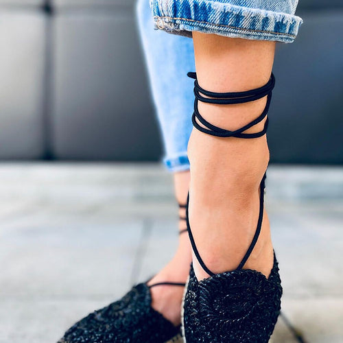 Espadrilles for women tied around the ankle. Unique, braided pattern beautifully accents the foot... High sole finished with linen string will be perfect for many summer stylizations. See for yourself, with what they will match best: ) Outer material ? braided cord. fabric ~pleciony sznurek Size Insole lenght 36 23 cm 37 23,5 cm 38 24 cm 39 25 cm...