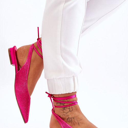 The fashionable ballerinas with an open heel and a pointed toe were made of textile material. The upper was additionally decorated with rhinestones. The soft eco leather insole will ensure comfort during use. The ballerinas have a flat heel and binding around the calf. A great model for warmer days! fabric fabric Footbed artificial leather Heel height 2 cm Size...