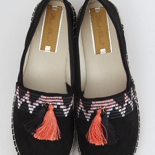 Women's espadrilles with fringe. The model has a rounded and braided with a linen string nose, as well as an embroidered, unique pattern. They look beautiful on the leg! Surely they will delight all lovers of boho style : ) They are made of ecological suede and the inside is lined with fabric. Size Insole lenght 36 22,5 cm 37...