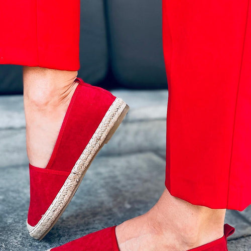 Espadrilles for women on a flat sole. These are the perfect shoes for fans of fashionable solutions that work in every situation! Their classic design is highlighted by beautifully shimmering finish, which gives them unique character. They are made of ecological suede and the inside is lined with fabric. fabric ecological suede Footbed fabric Size Insole lenght 36 22,5 cm...