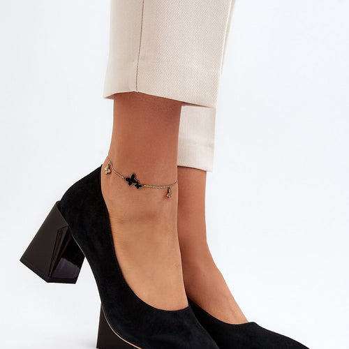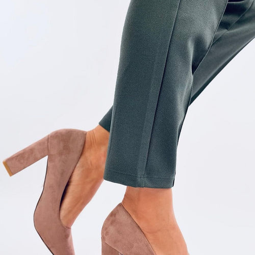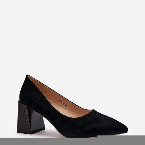 Women's suede pumps on a post. They have a classic and very feminine cut with a tapered nose. Stable heel with a height of 9.5 cm will beautifully slenderize your silhouette. They will surely steal your heart : ) Outer material - ecological suede. fabric ecological suede Heel height 9,5 cm Size Insole lenght 36 23,5 cm 37 24,3 cm...