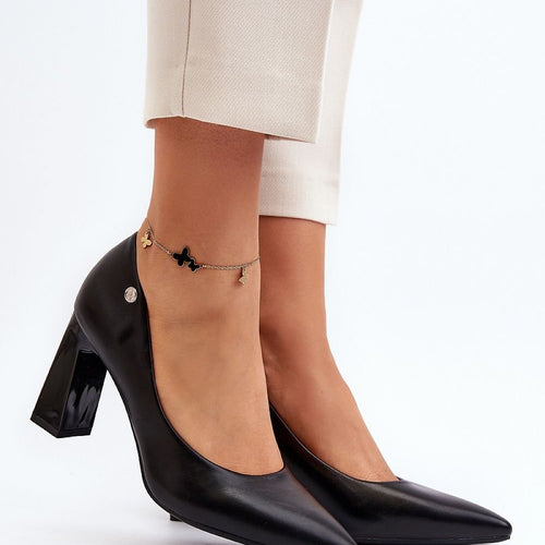 Elegant pumps with a stable stiletto heel are an excellent choice for many occasions. Made with attention to detail, they feature a soft and comfortable natural leather insole that will ensure comfort even during long wear. Their pointed toe noses add style, while the subtle emblem on the sides of the upper gives them a sophisticated touch. The front is...